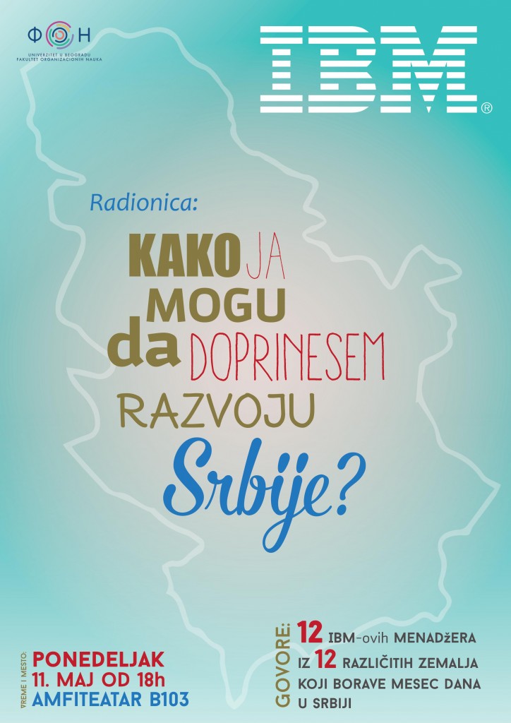 Članovi tima su angažovani na neprofitnim projektima u Srbiji kao pro bono konsultanti. U okviru radionice, govoriće o primeni savremenih informacionih tehnologija u poslovanju, o svojim iskustvima, ličnom razvoju i društvenoj odgovornosti pojedinca. Radionica se održava u sali B103, u 18 časova.